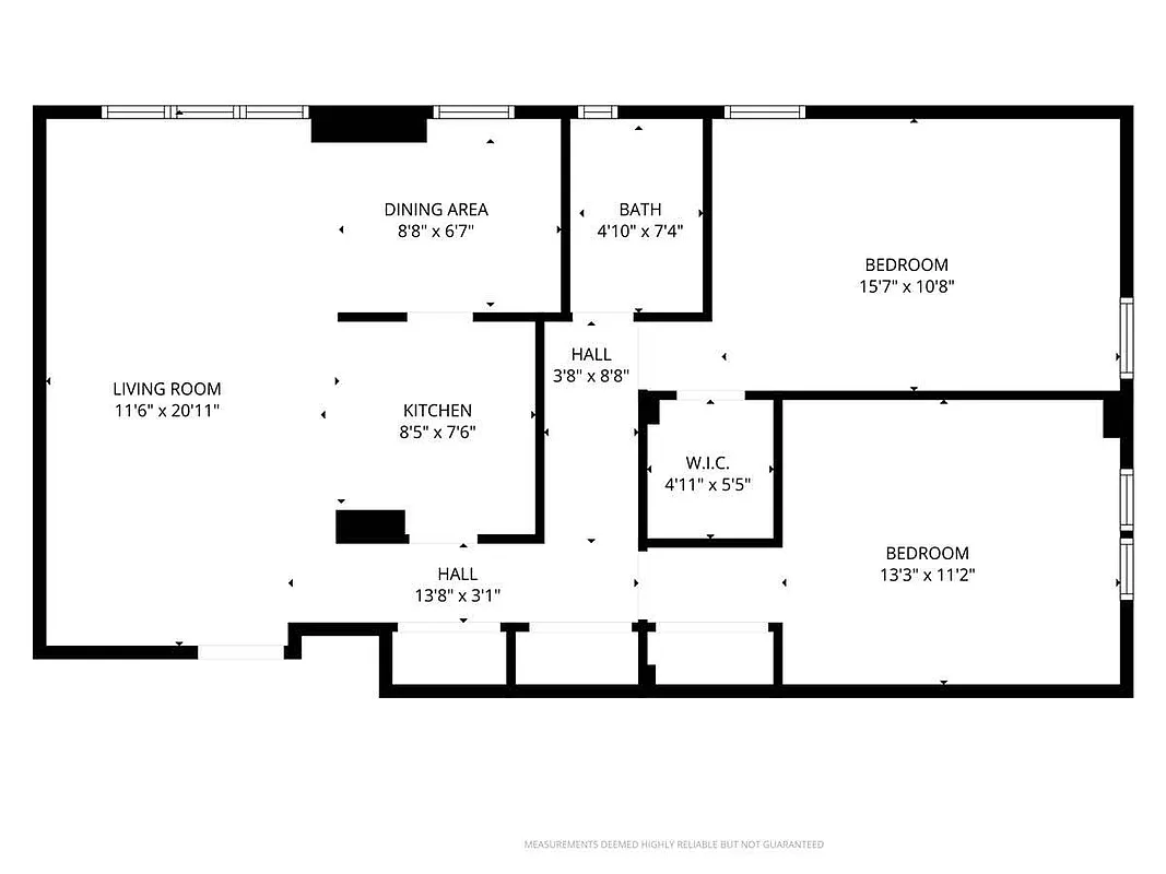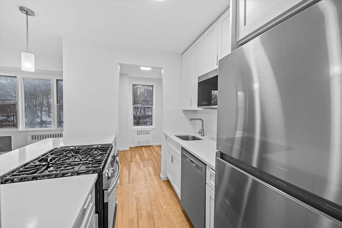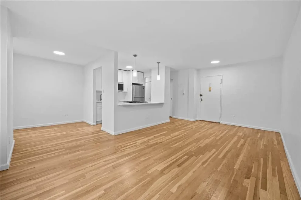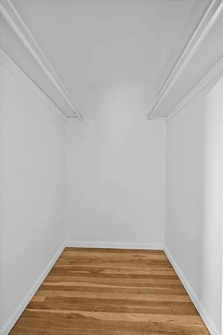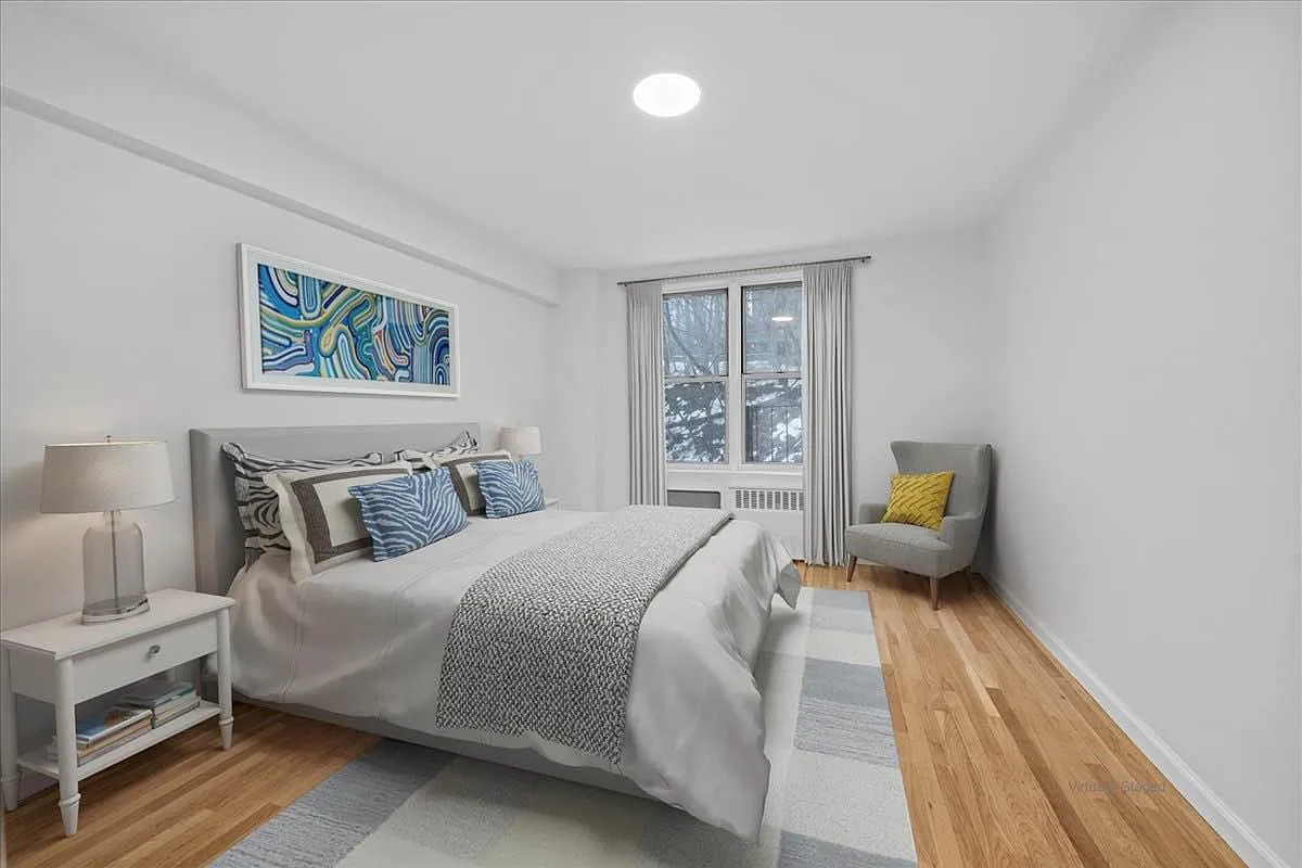 The primary bedroom features a desirable walk-in closet, offering generous storage and everyday convenience. Hardwood floors run throughout the apartment, adding warmth and timeless appeal, while the well-proportioned rooms provide flexibility for a variety of living arrangements.